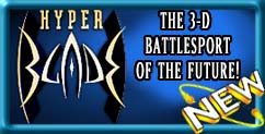 Arenas: There are 12 virtual three dimensional arenas to play in with many different unique layouts of powerups and obstacles, such as jumps, ramps, trenches, bumps, and traps. "HyperBlade’s advanced engine technology has allowed us to replicate real-world conditions within the virtual 3-D arena," explained Louis Peterson, game producer.